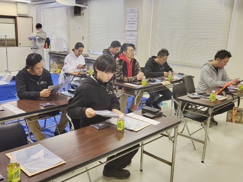 まずは座学や新製品のご紹介など。