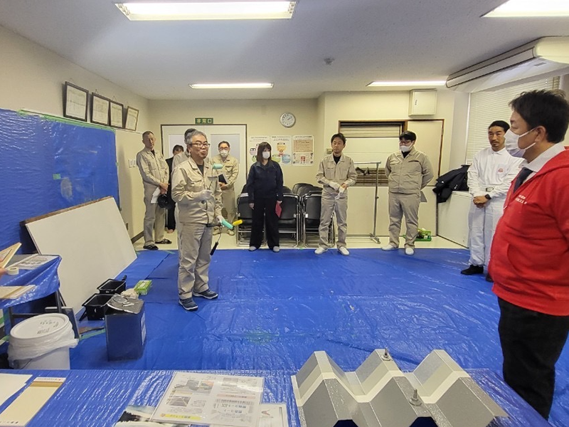 東日本塗料様のご厚意に感謝申し上げます。このように、日本多能工協会では塗装、防水、左官メーカーとガッチリスクラムを組み、今後の建設業界の未来に貢献していきたいと思っています。